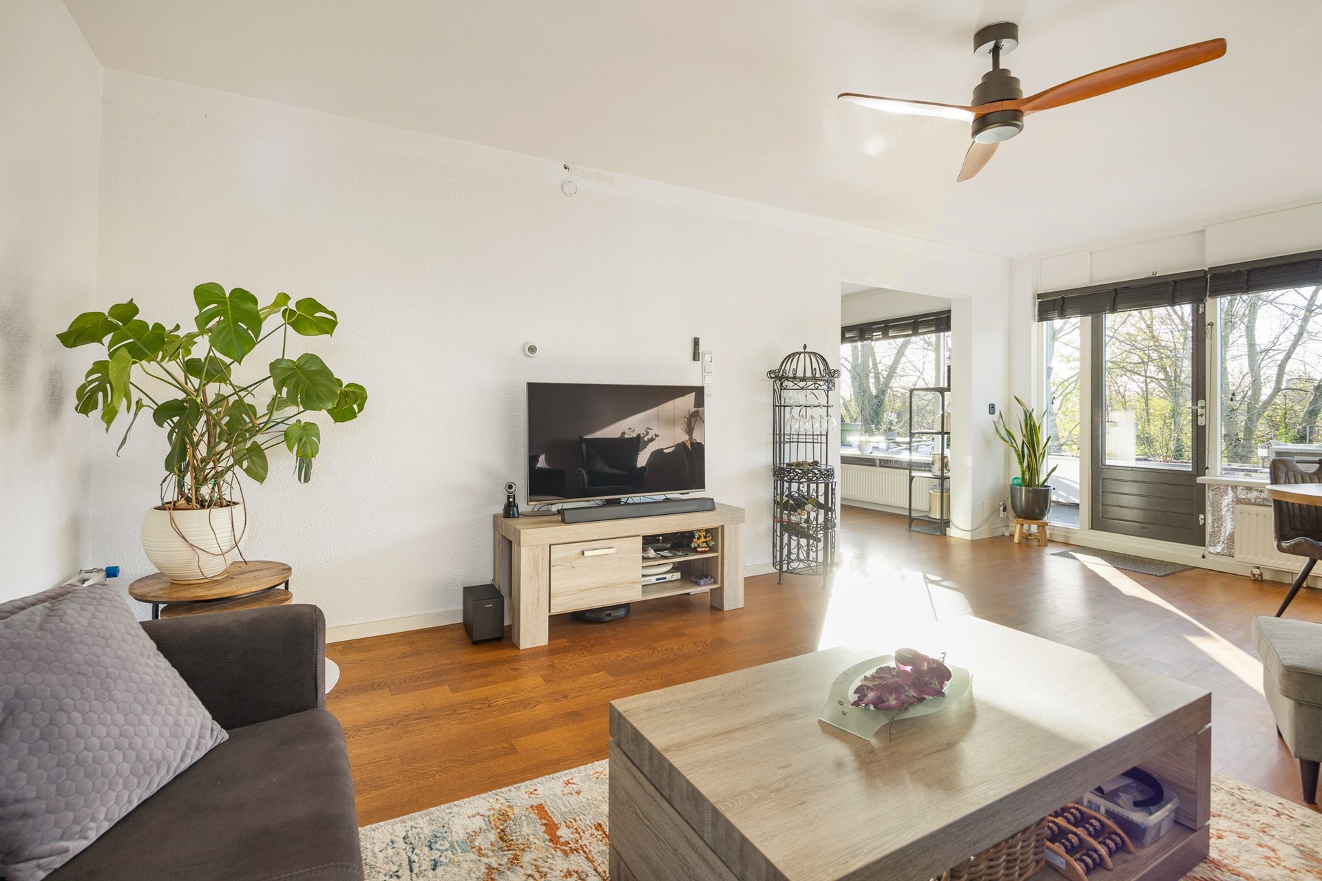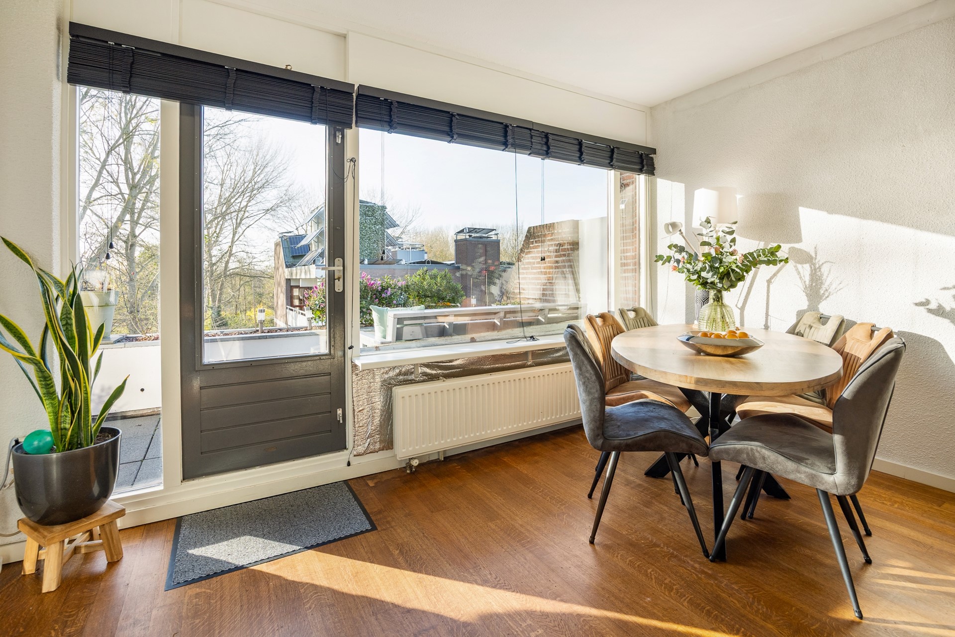 Op de bovenste verdieping tref je bij de voordeur het eerste eigen balkon aan. Bij binnenkomst geeft een lange gang toegang tot alle ruimtes. Zo vind je hier twee slaapkamers, de badkamer met inpandige berging, meterkast en de toiletruimte. Vanuit de gang kom je in de half open keuken en de woonkamer. Beide ruimtes zijn direct aan de balkonzijde gelegen en zijn ruim en licht. Het balkon is op het zuiden gelegen en biedt een heerlijk uitzicht op openbaar groen. De half open keuken voorziet in een L-opstelling met diverse inbouwapparatuur. Middels de gang zijn de ruime slaapkamers en de badkamer bereikbaar. De laatste is voorzien van een douche, wastafel en de opstelplaats voor de wasmachine en de droger en een kleine inpandige berging. In de gang tref je ook de toiletruimte aan.