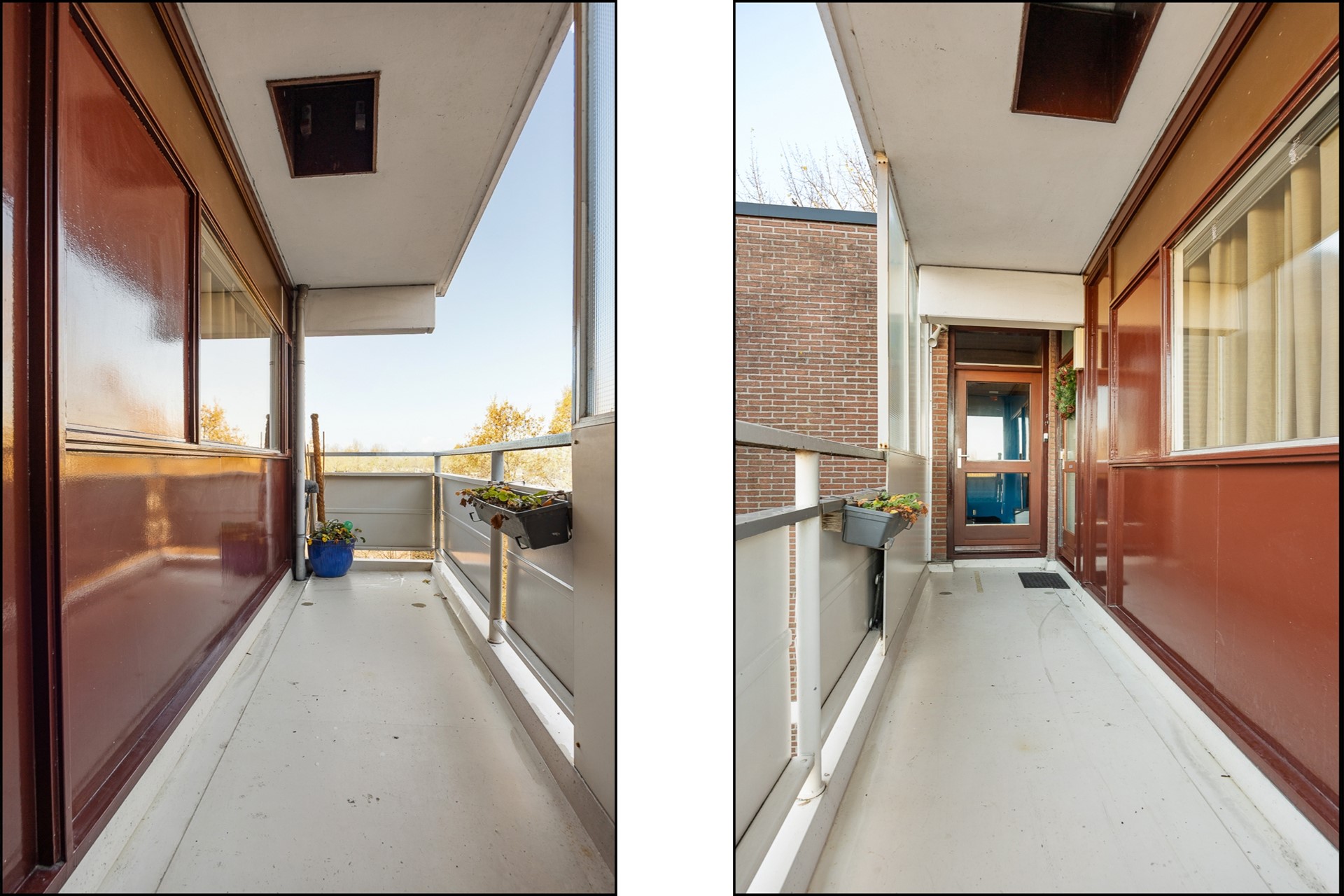 Dit fijne appartement voorziet in twee balkons. Het eerste balkon tref je al aan bij de voordeur. Het tweede en tevens het grootste balkon is gelegen aan de achterzijde. Gelegen op het zuiden en ca. 14 m2 groot.
