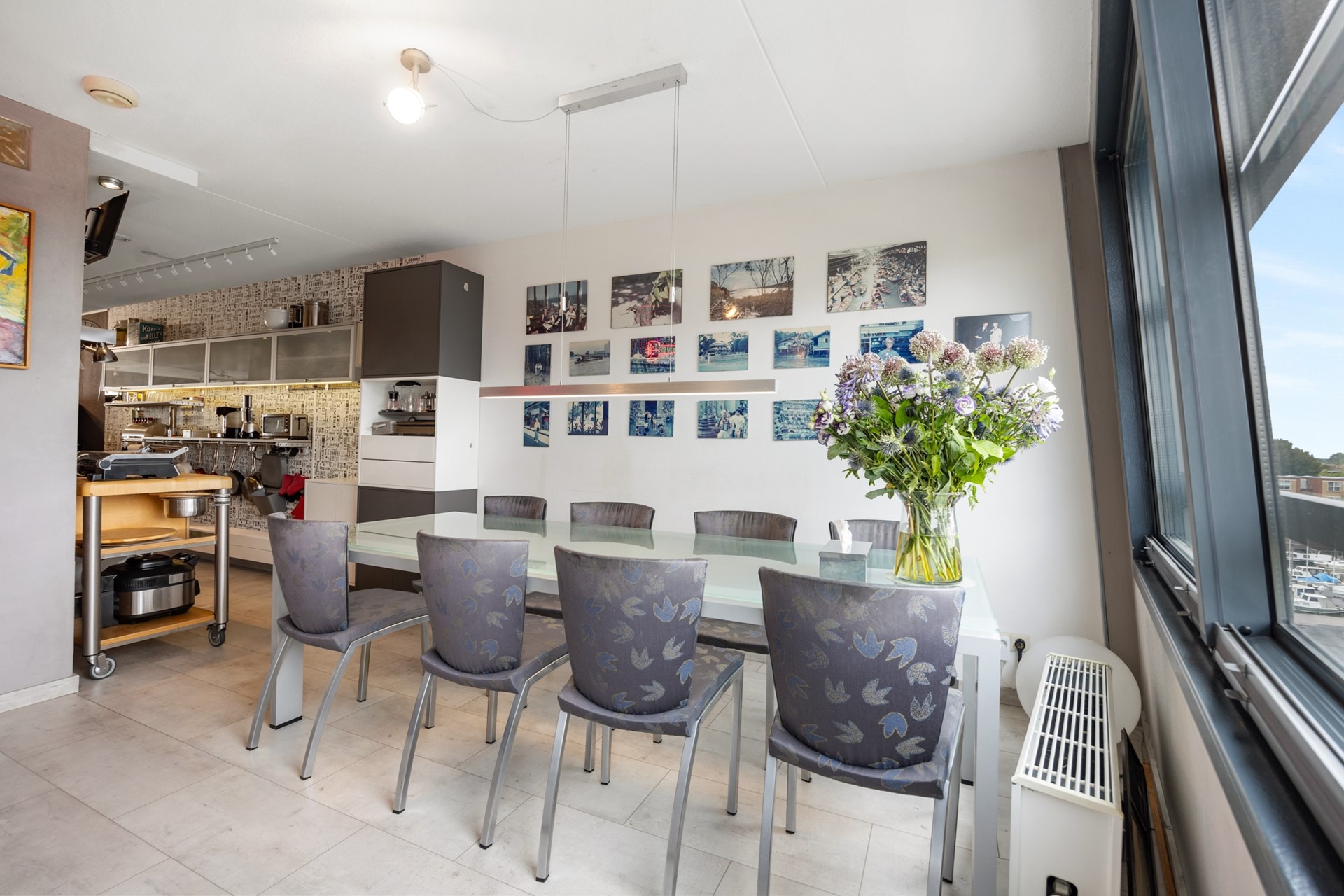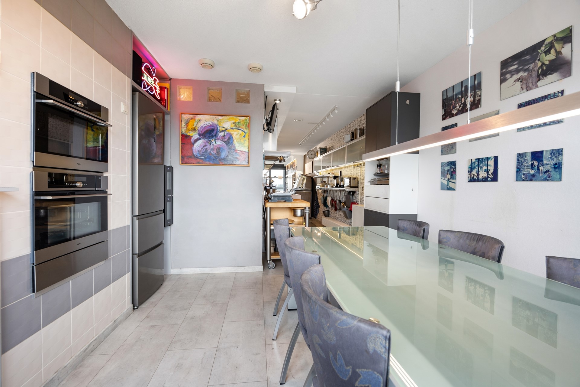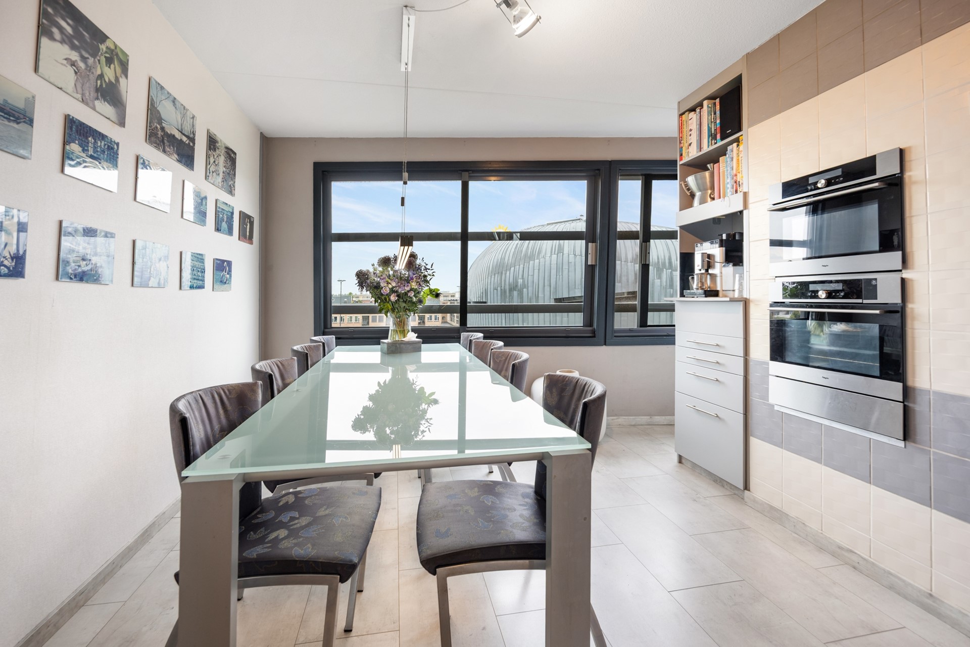Als je wat doorloopt kom je in de woonkeuken, met uitzicht op de levendige binnenstad. Het 'hoekie om' geeft je toegang tot een op slimme wijze aangebrachte werkruimte. Buiten het zicht kun je hier prima thuiswerken, een hobby of studeren.