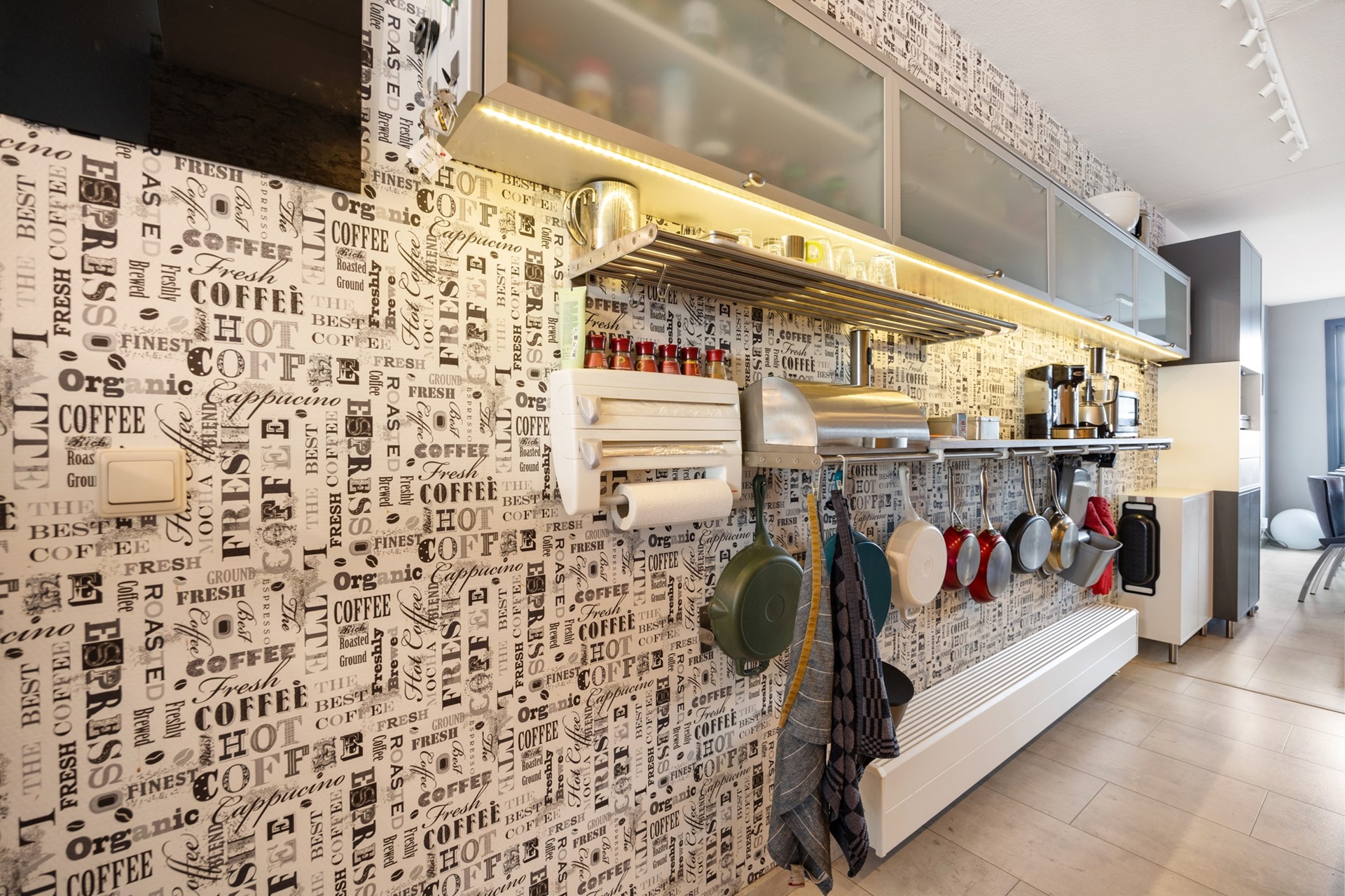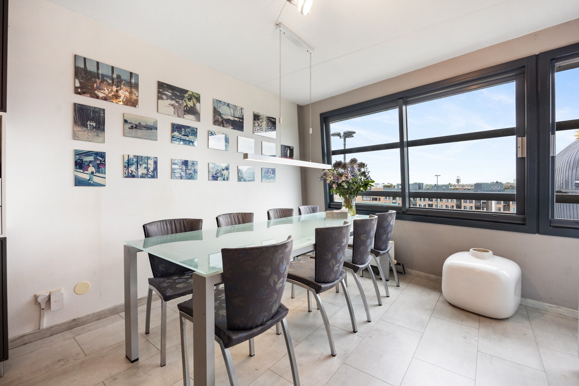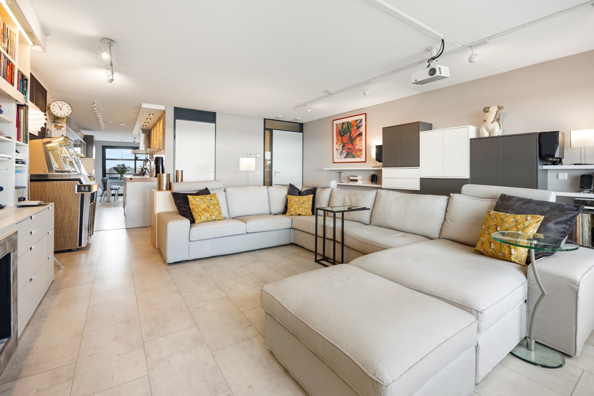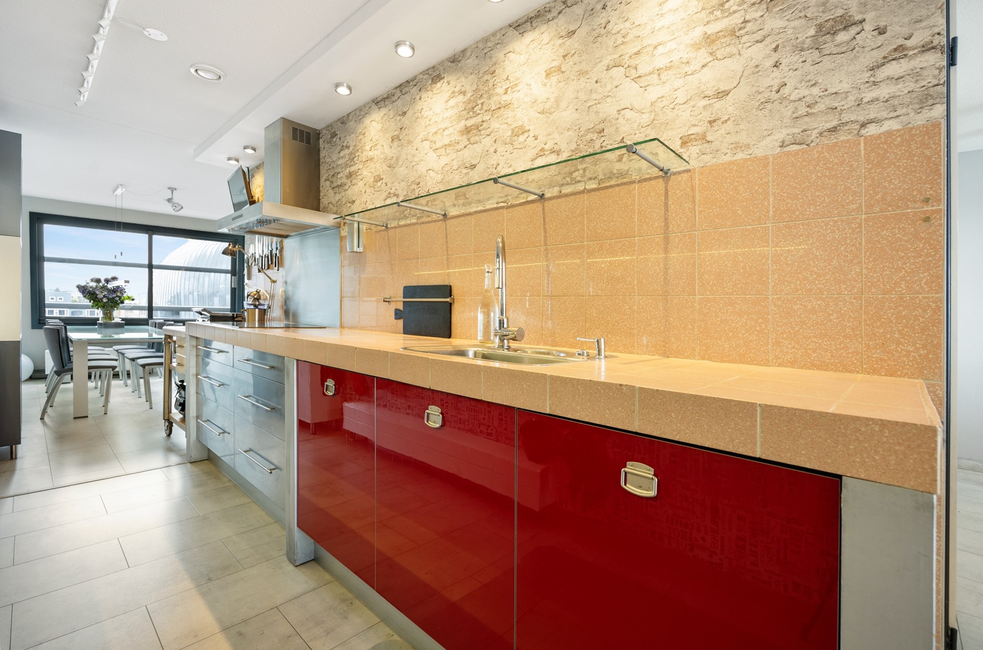 Als je wat doorloopt kom je in de woonkeuken, met uitzicht op de levendige binnenstad. Het 'hoekie om' geeft je toegang tot een op slimme wijze aangebrachte werkruimte. Buiten het zicht kun je hier prima thuiswerken, een hobby of studeren.