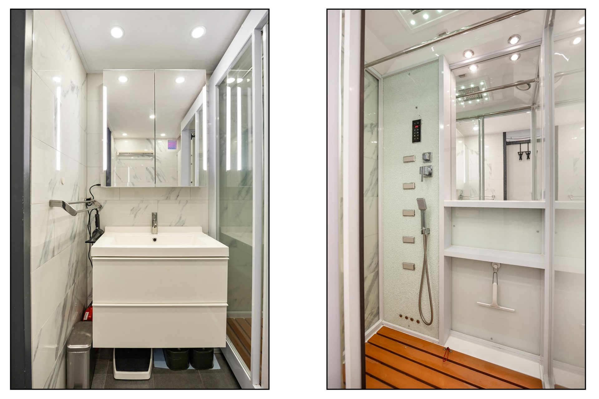 | Badkamervoorzieningen | Douche, Inloopdouche, Stoomcabine, Wasmachineaansluiting, Wastafel |