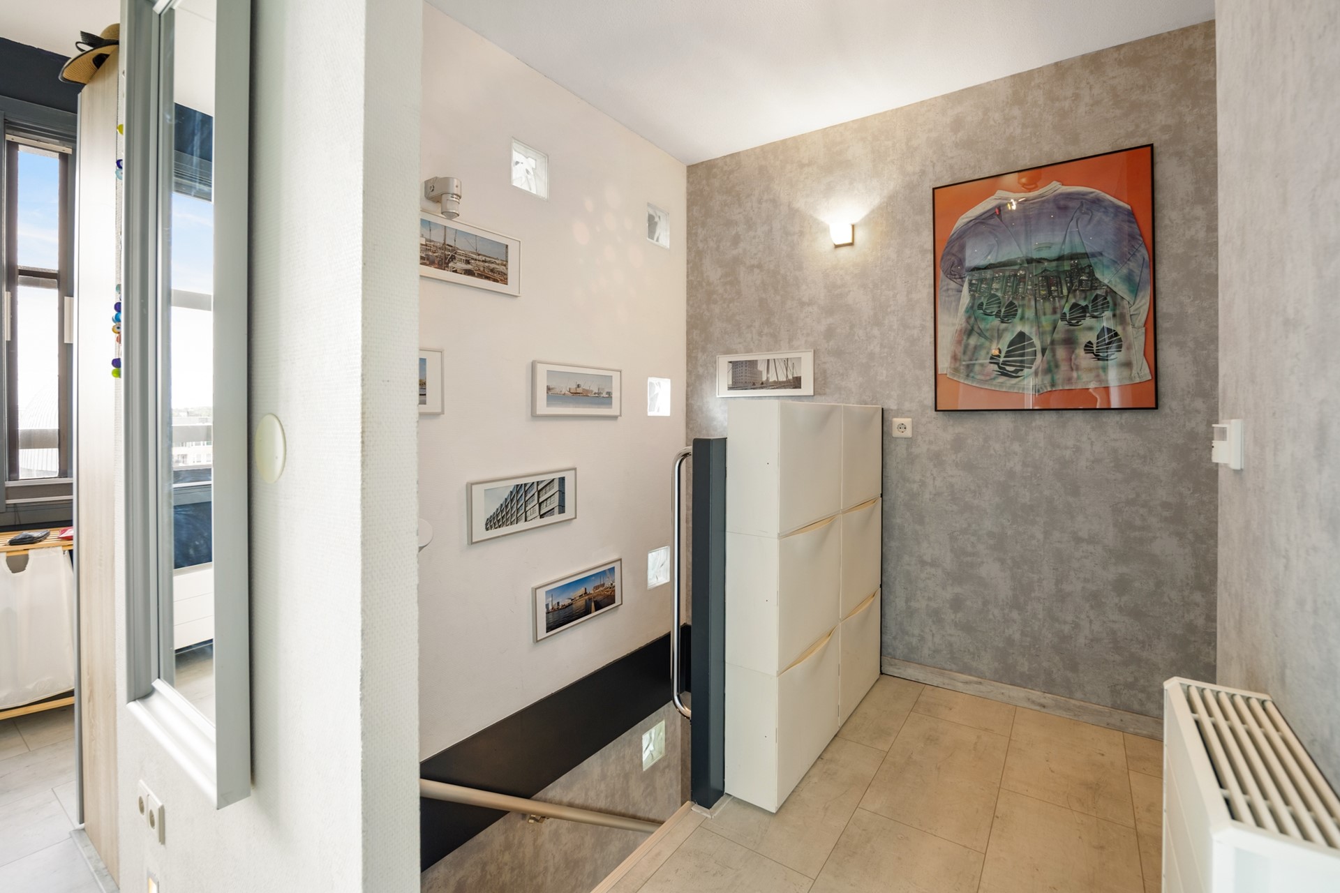 First floor On the 5th floor is the entrance to this maisonnette. Here, in addition to the entrance with a cloakroom, there is also a staircase that leads you to the generously sized living floor below.