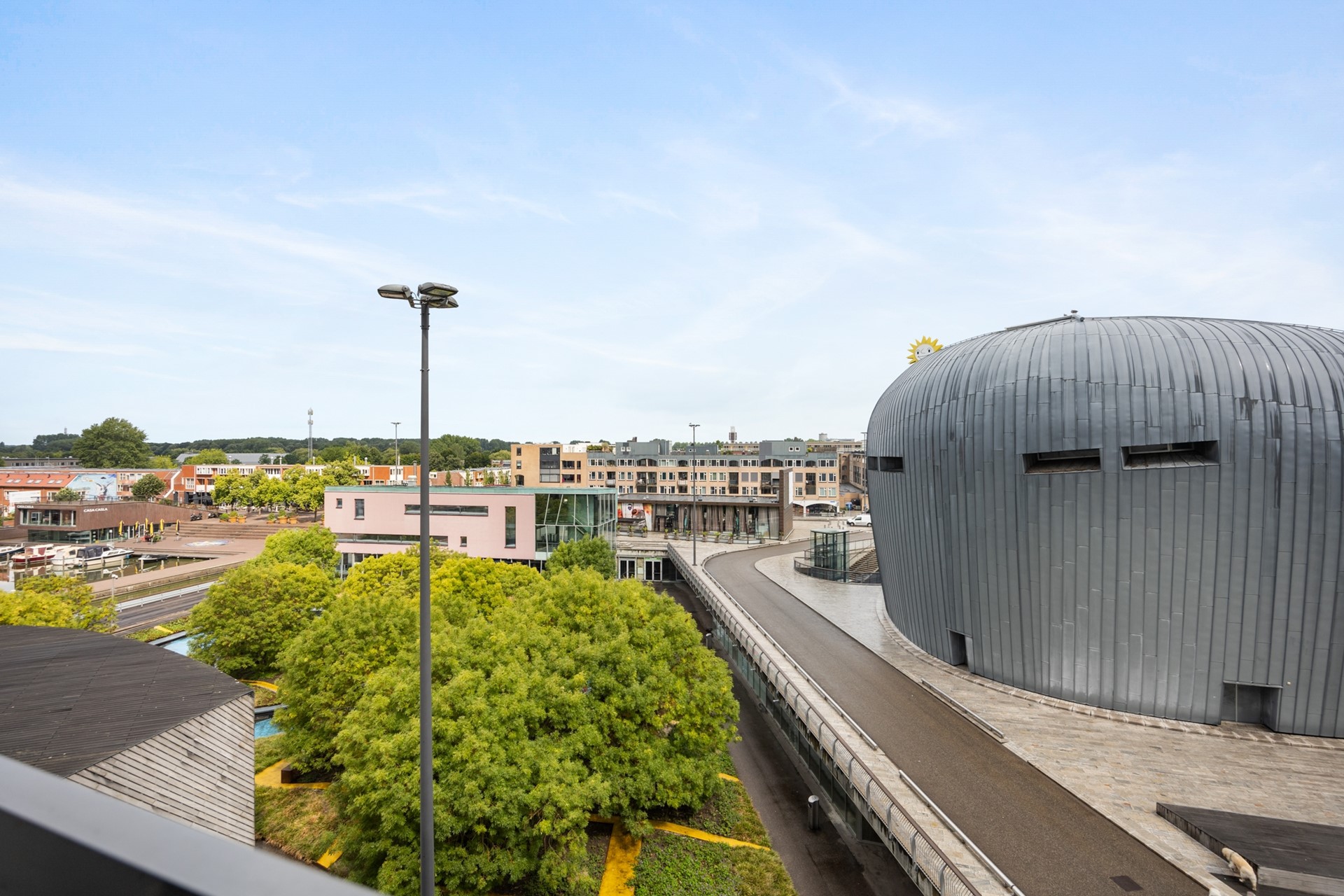 Appartementencomplex "The Wave" is door zijn vorm een bijzonder gebouw. Deze keer breng ik een unieke maisonnette onder jouw aandacht. In 20 jaar zag ik vele woningen, indelingen en inrichtingen maar hier vind je iets bijzonders. Als je de woonkamer binnenkomt dan pakt de inrichting je. Een gezellige 'ruime zit' met zicht op water, een gezellige haard en een ruim bemeten boekenkast. Aan de achterzijde, met zicht op de stad, bevindt zich de riante woonkeuken en slim aangebrachte werkplek.